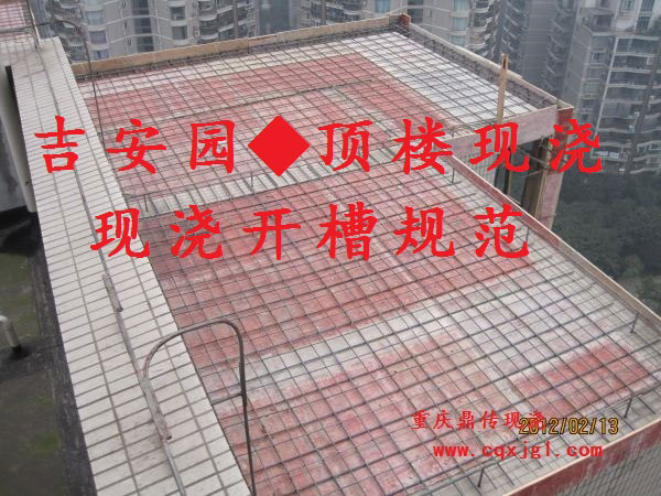 现浇原因:吉安园顶楼赠送面积超大.露台面积300平方左右.用其中一部分现浇变成室内房间