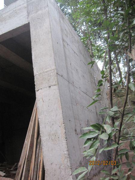 坏使得墙纸大面积脱落(家居长霉.催化),花园地面全部下沉,原主体结构无异常情况.由设计院专业人