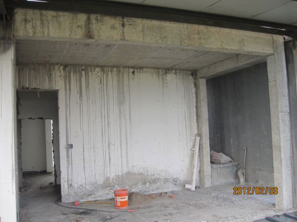 改造原因:业主房屋装修好有几年时间,由于房屋非承重结构下沉使室内墙体及地面开裂.防水被破